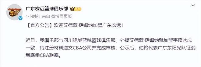 广东男篮新赛季的阵容基本上已经确定,目前广东男篮最为期待的,就是传说中的“奶茶哥”萨姆纳也能加盟球队。就在刚刚,这件事有了确切的消息:先是四川男篮官宣,将萨姆纳的优先续约权交易给了广东男篮,接着CBA官方也公布了这个消息,最后广东男篮发布官宣,欢迎萨姆纳正式加盟球队。